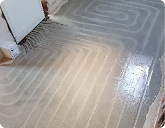 Fußbodenheizung: Situation nach Einfräsen und Verlegung der Rohre